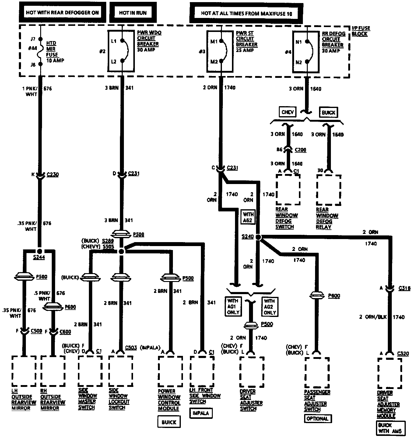 HTD MIR Fuse, PWR WDO, PWR ST And RR DEFOG Circuit Breakers: