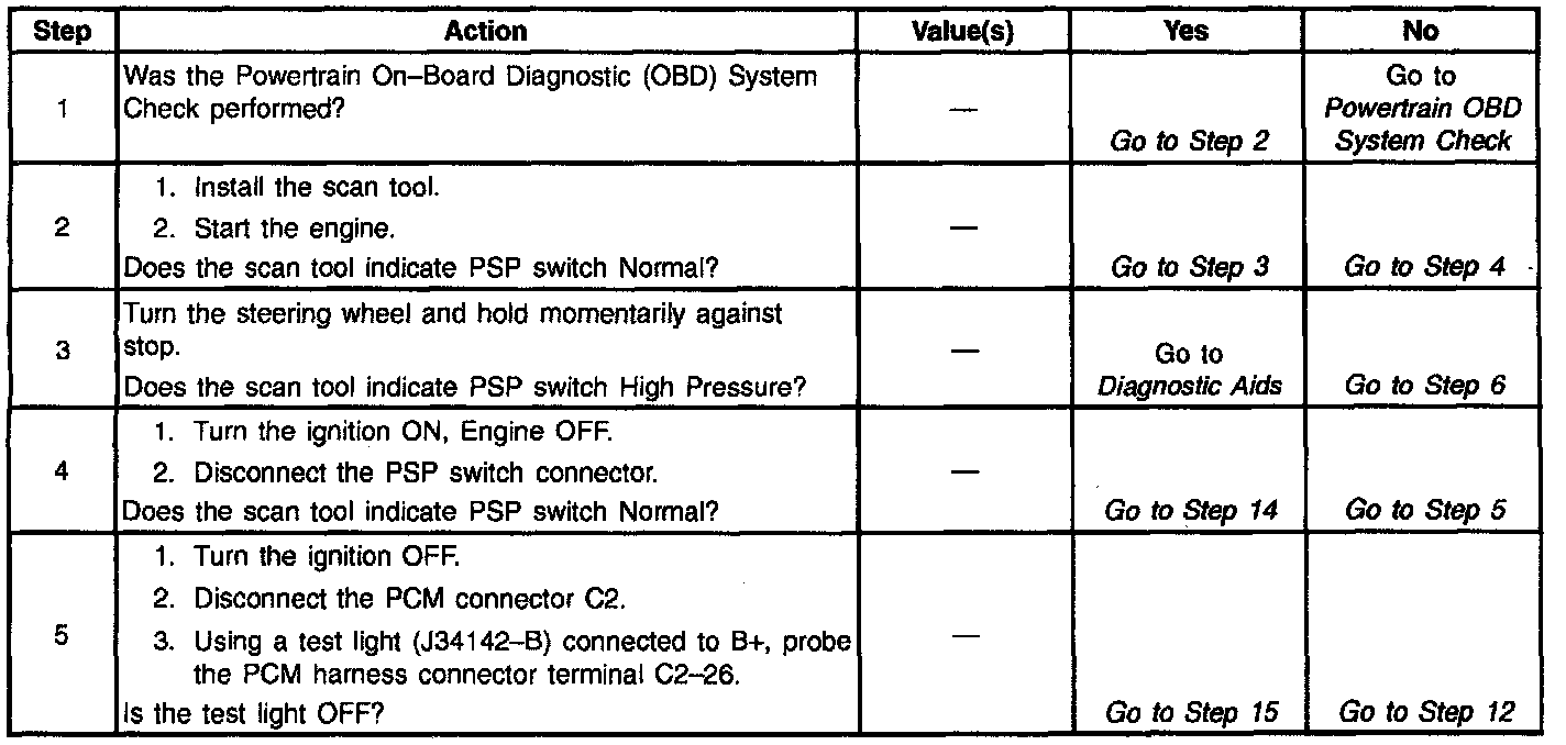 Power Steering Pressure Switch Check