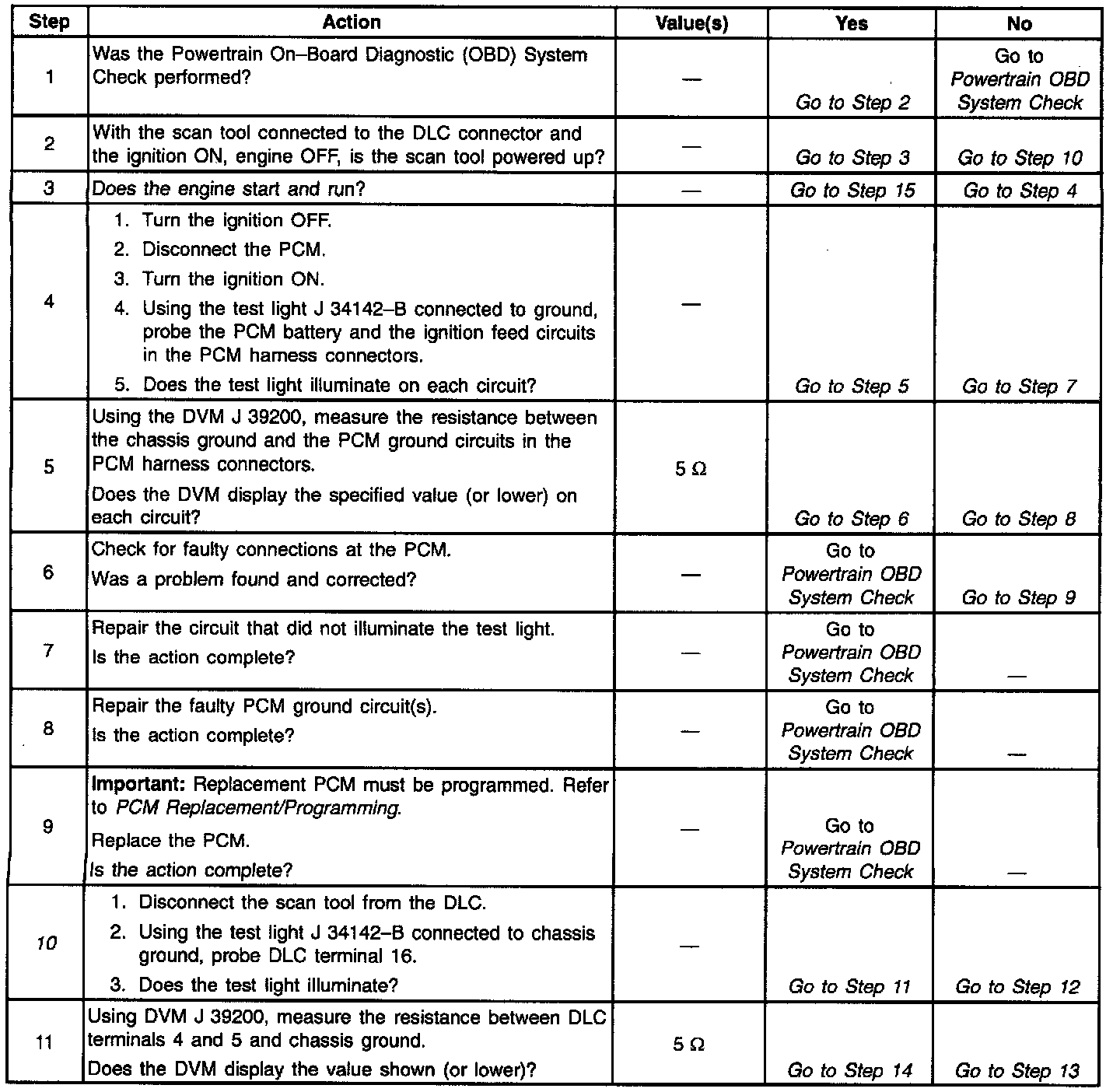 The diagnostic tables in this section are designed for use with a scan tool. If the scan tool is inoperative, this must be corrected before beginning any other diagnostic procedures. DO NOT Clear Info unless instructed by a diagnostic procedure.