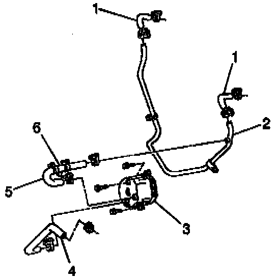 6. Remove the fasteners to the AIR cross under pipe (2) bracket, both sides.