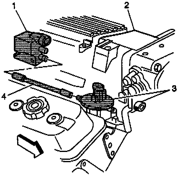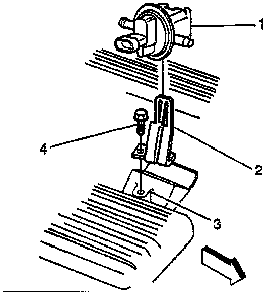 1. Install the New EVAP vacuum switch (1) to the bracket (2).