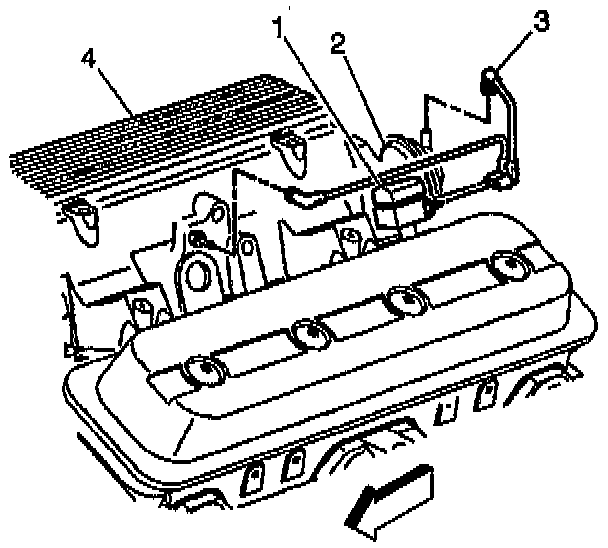 1. Install the solenoid valve (1) and bracket to the intake manifold (4).