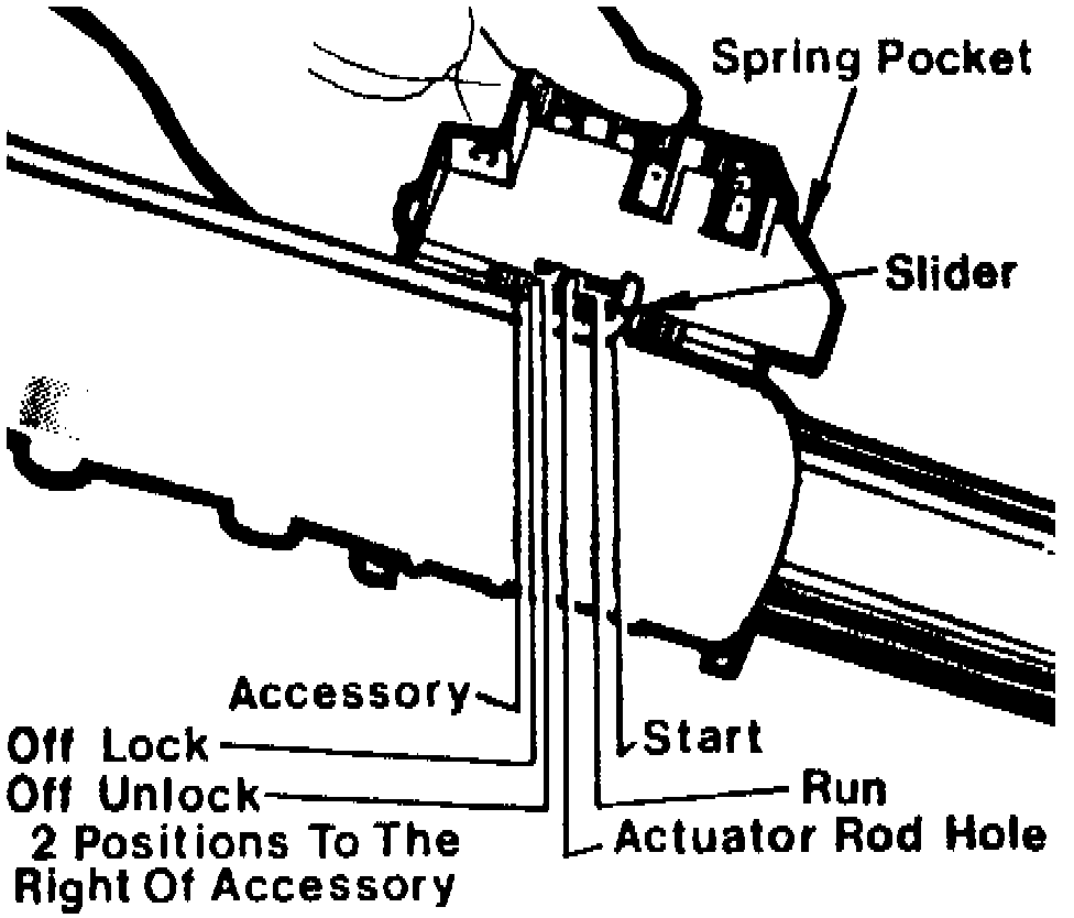 The ignition switch is mounted on top of the mast jacket inside the brake pedal support and is actuated by a rod and rack assembly.
