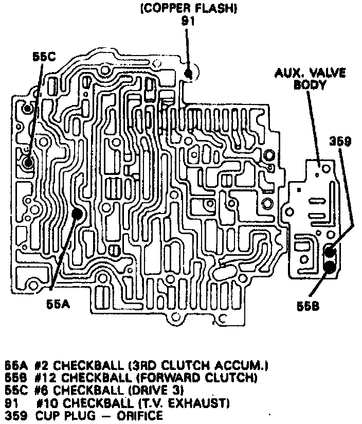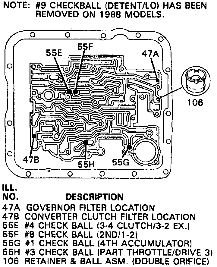 15. Note number of check balls located under valve body and number of check balls located in case. Remove and retain check balls.