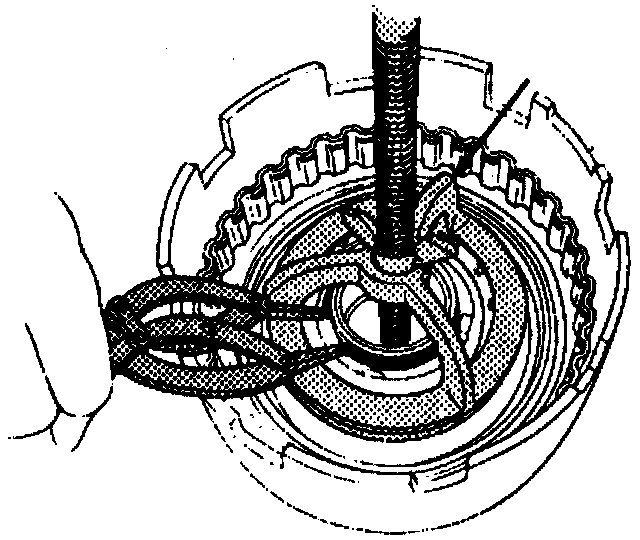 4. Remove spring assembly retainer ring and spring assembly.