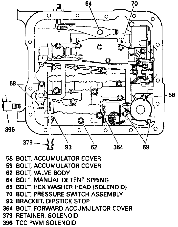 15. Install solenoid assembly into case, then two solenoid attaching bolts. Torque attaching bolts to specification.
