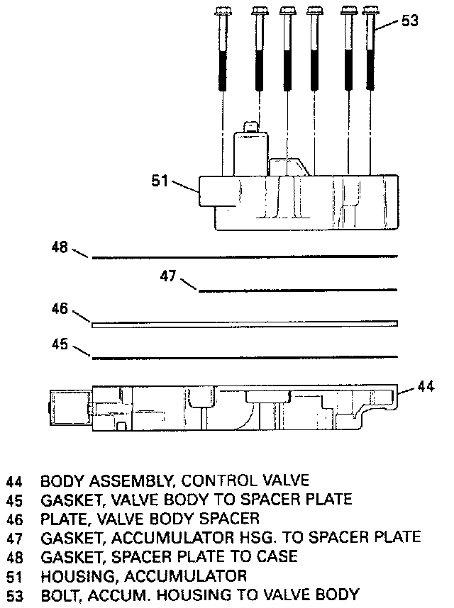 ^ Control valve assembly and accumulator housing (51) thoroughly in clean solvent.