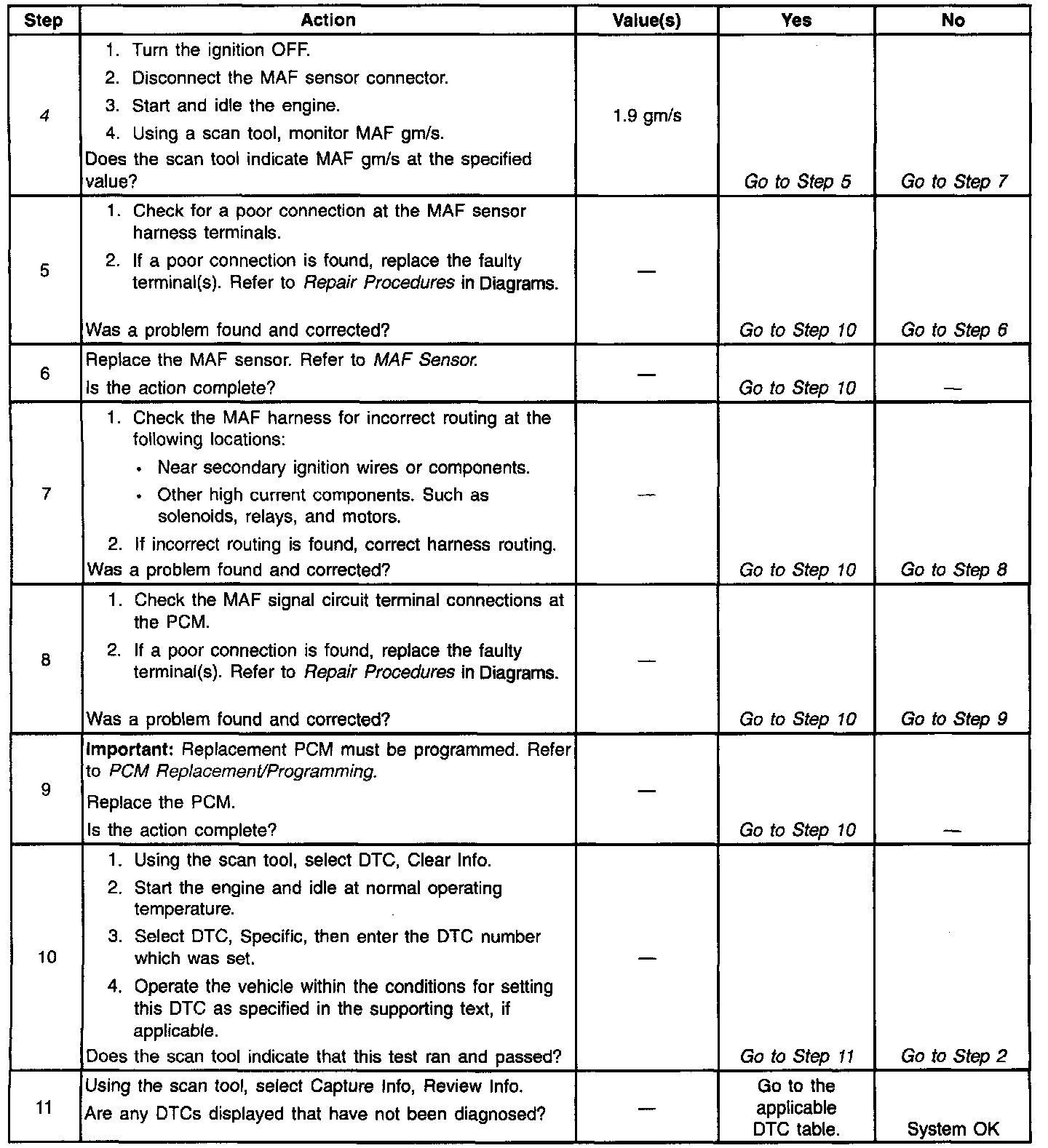 4. This checks for electromagnetic interference on the MAF sensor signal circuit. There should be no signal indicated on the scan tool with the sensor disconnected.