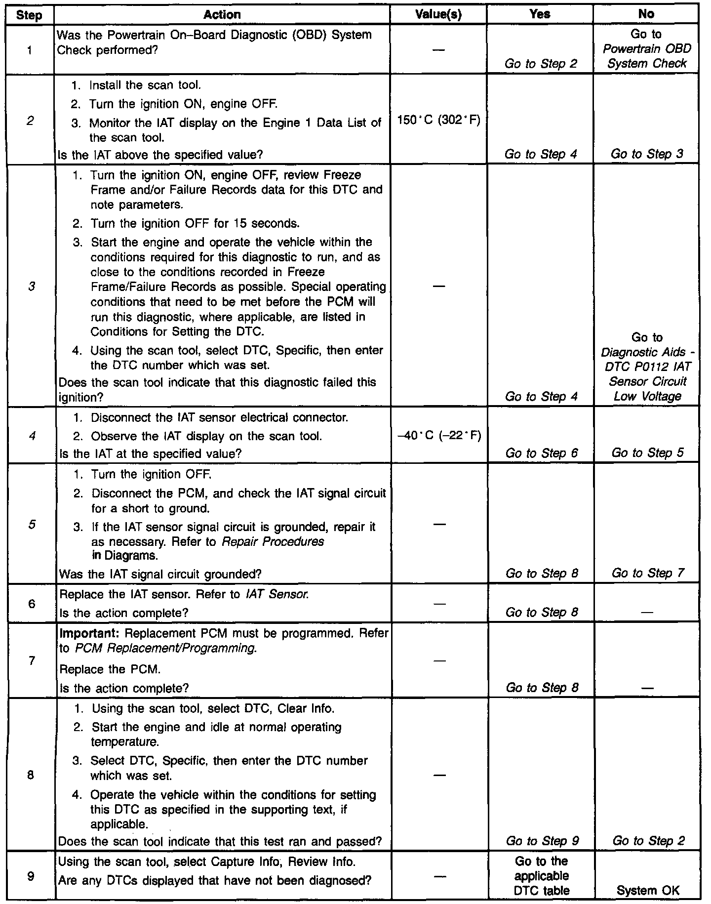 4. If the intake air temperature goes below -30°C �22°F), indicates the PCM and AT wiring are OK.