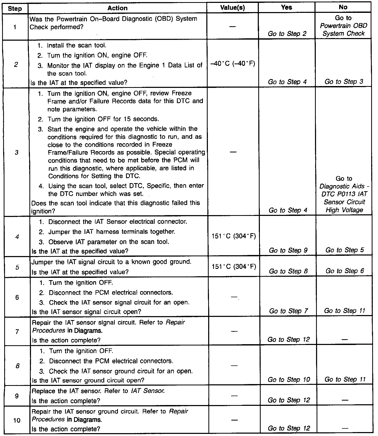 ^ If the engine has been allowed to sit overnight, the engine coolant temperature and intake air temperature values should display within a few degrees of each other. If the temperatures are not within 3°C (5°F), refer to Temperature Vs Resistance Table.