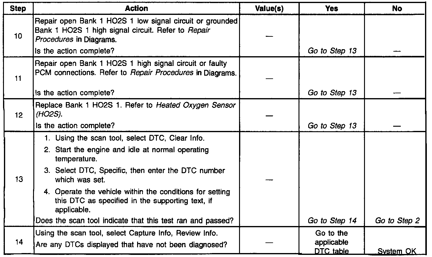 Number(s) below refer to step numbers on the diagnostic table.