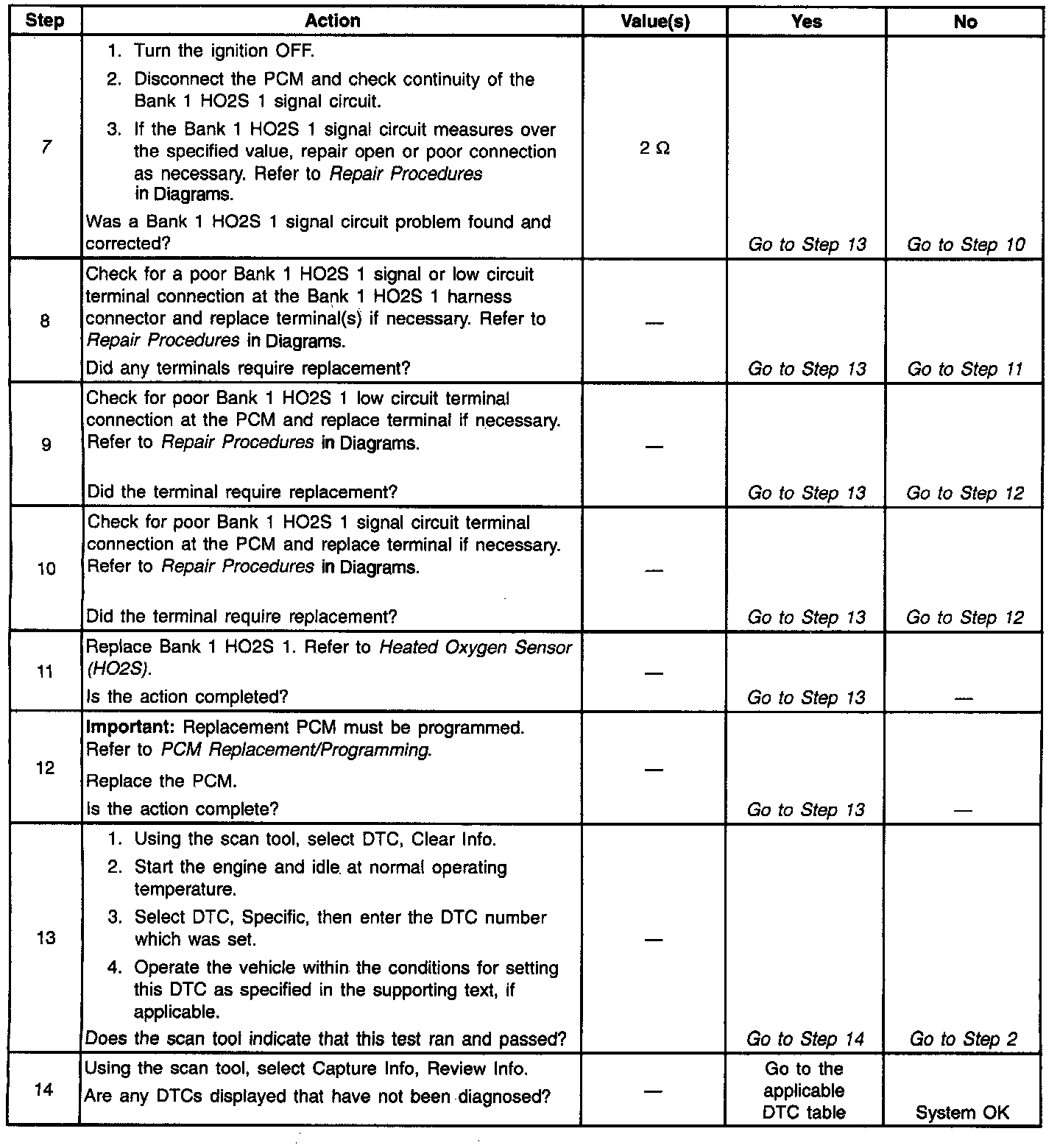 Number(s) below refer to step numbers on the diagnostic table.