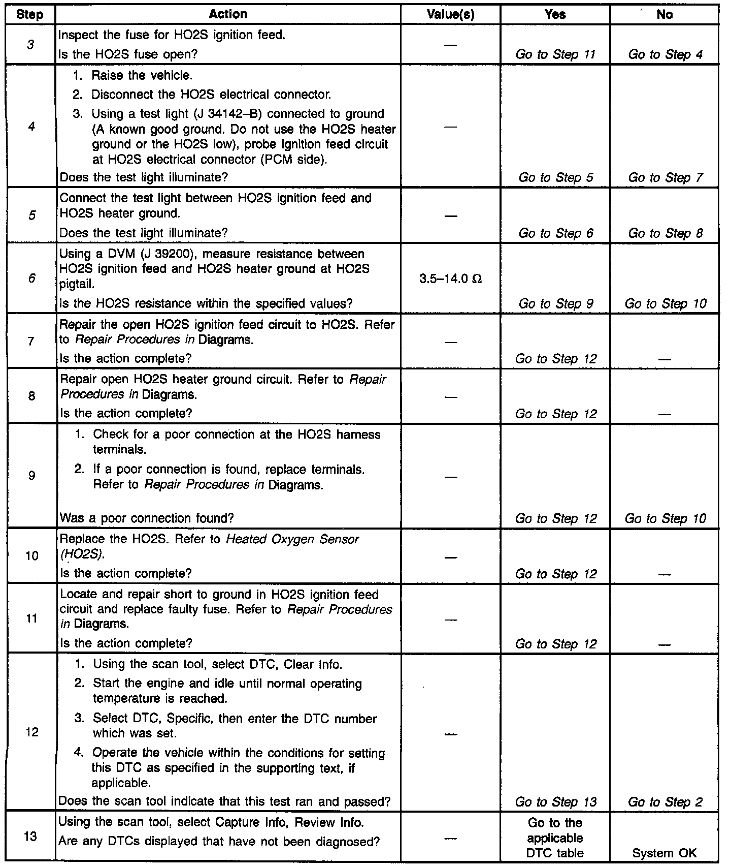 3. If more then one HO2S DTC is set, is good indication that the HO2S fuse is open. Check all related circuits going to all heated oxygen sensors for a short to ground. If all wiring checks to be OK, it may be necessary to disconnect each HO2S one at a time to locate a shorted sensor.