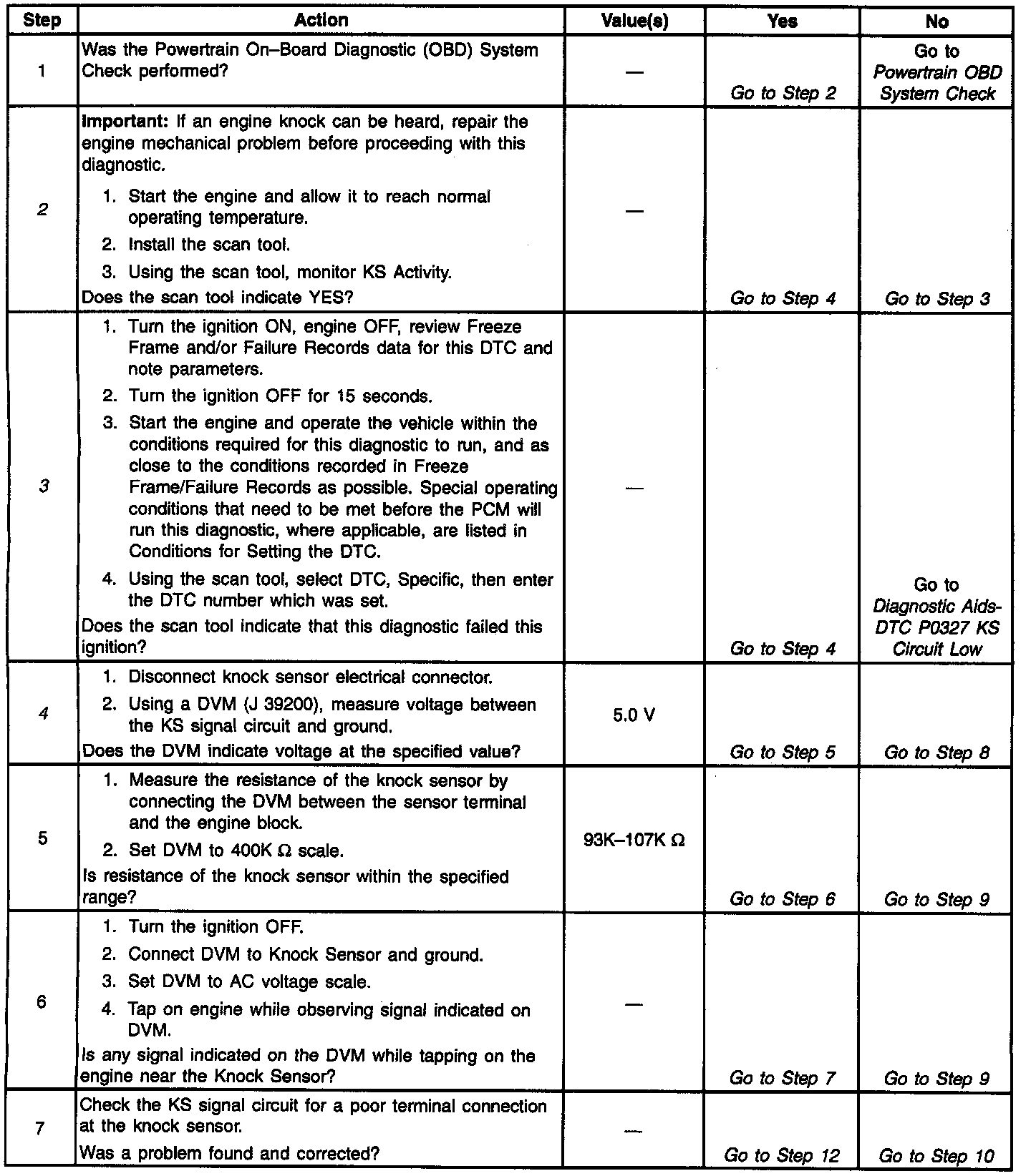 ^ The PCM determines that this frequency is less than or greater than the expected amount, a knock sensor DTC will set.
