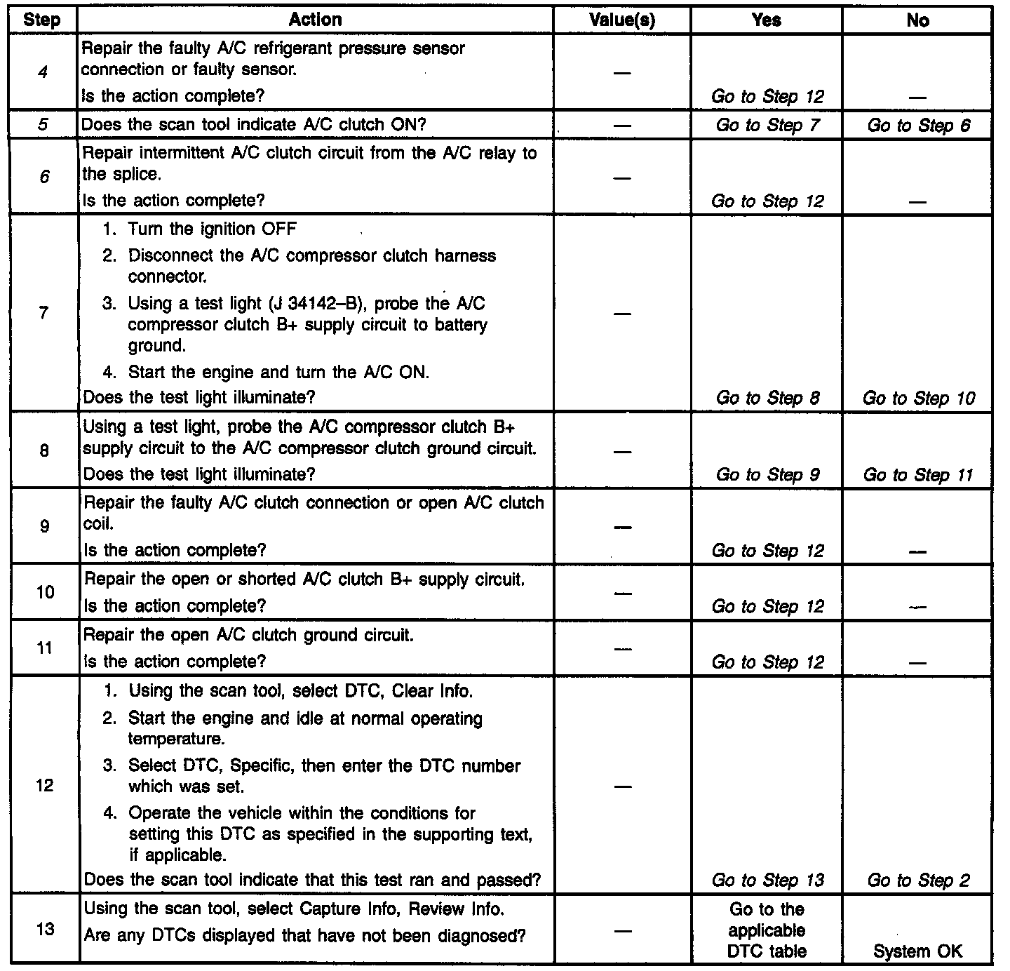 6. If the B+ supply circuit to the A/C relay is intermittent, the PCM A/C clutch status circuit may not detect voltage when A/C is commanded ON. So inspect relay connections and operation.