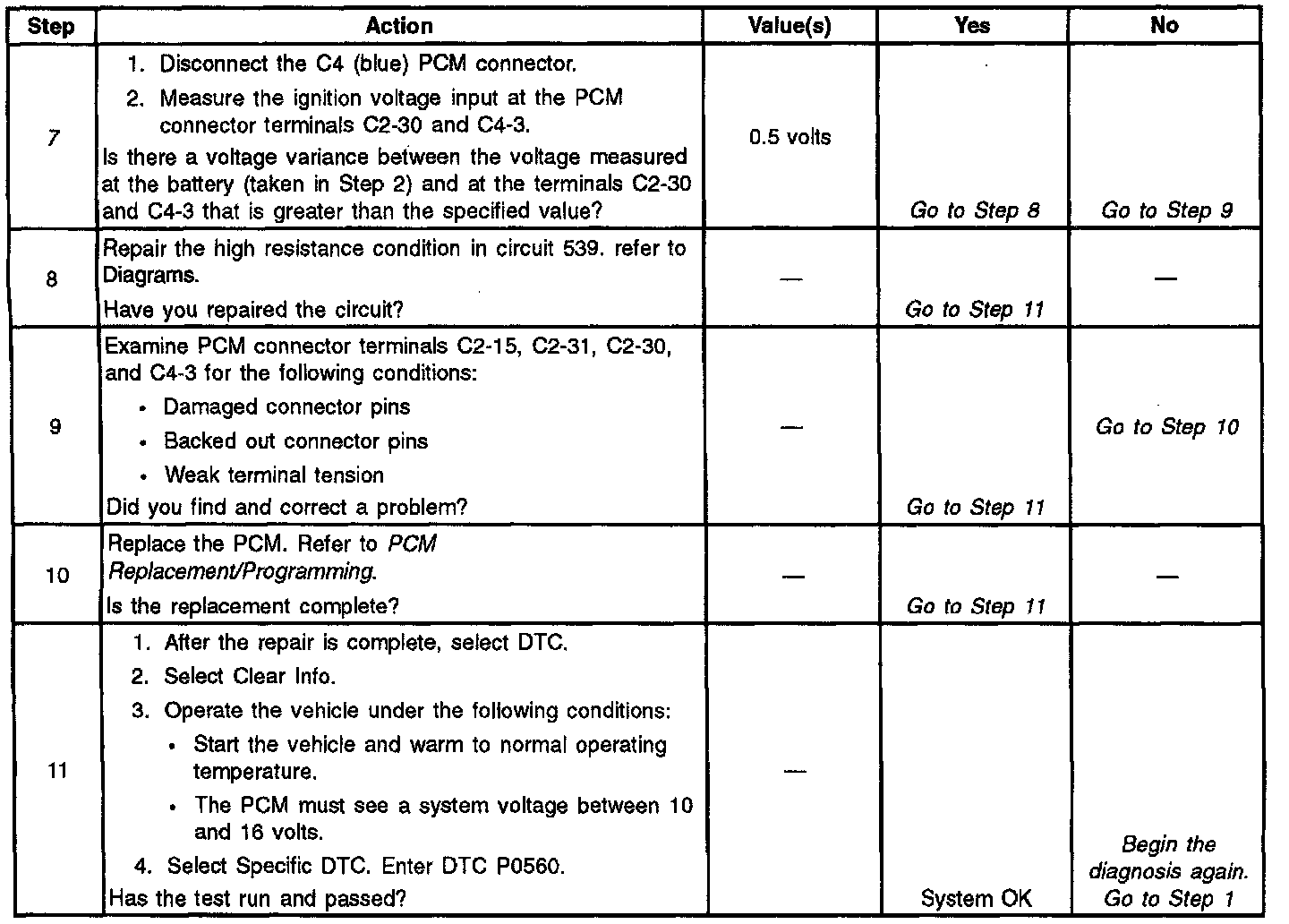 7. This Step tests the ignition voltage input at the PCM.