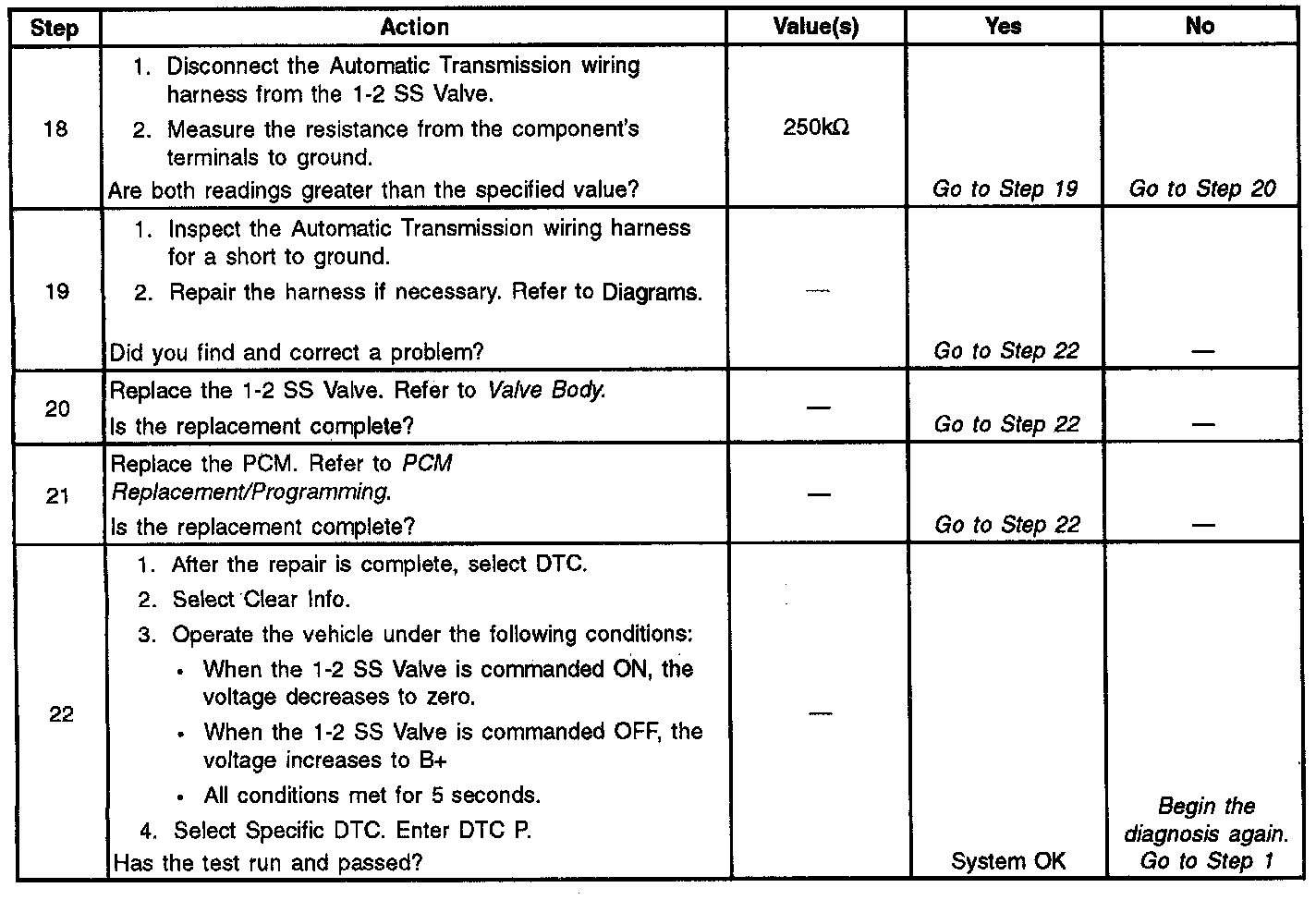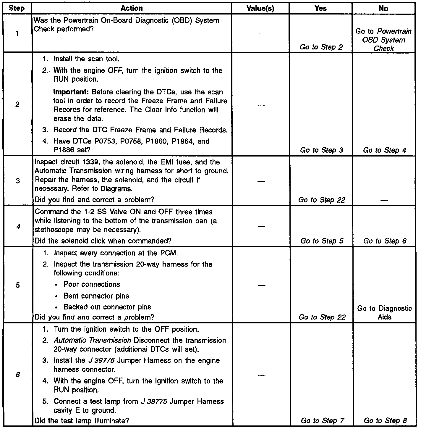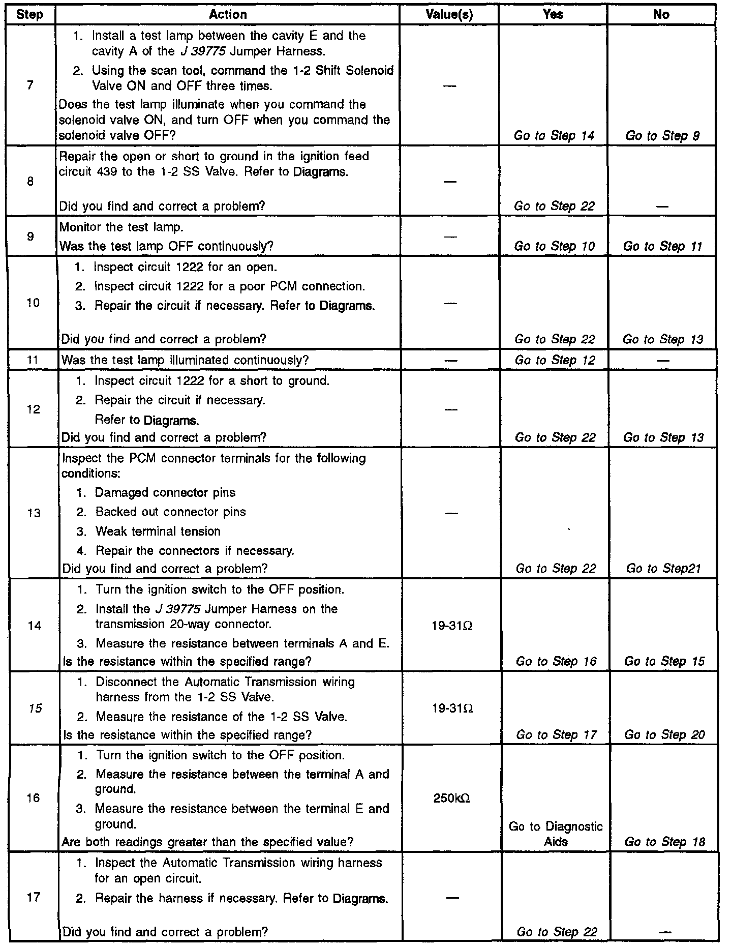 4. This Step verifies that the 1-2 SS Valve and the Automatic Transmission wiring harness are functioning normally.