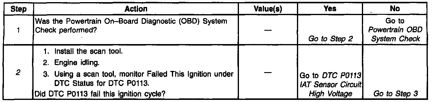 2. If DTC P0113 failed this ignition, indicates a hard failure is present. When a hard failure is present, both the hard and intermittent DTCs will set.