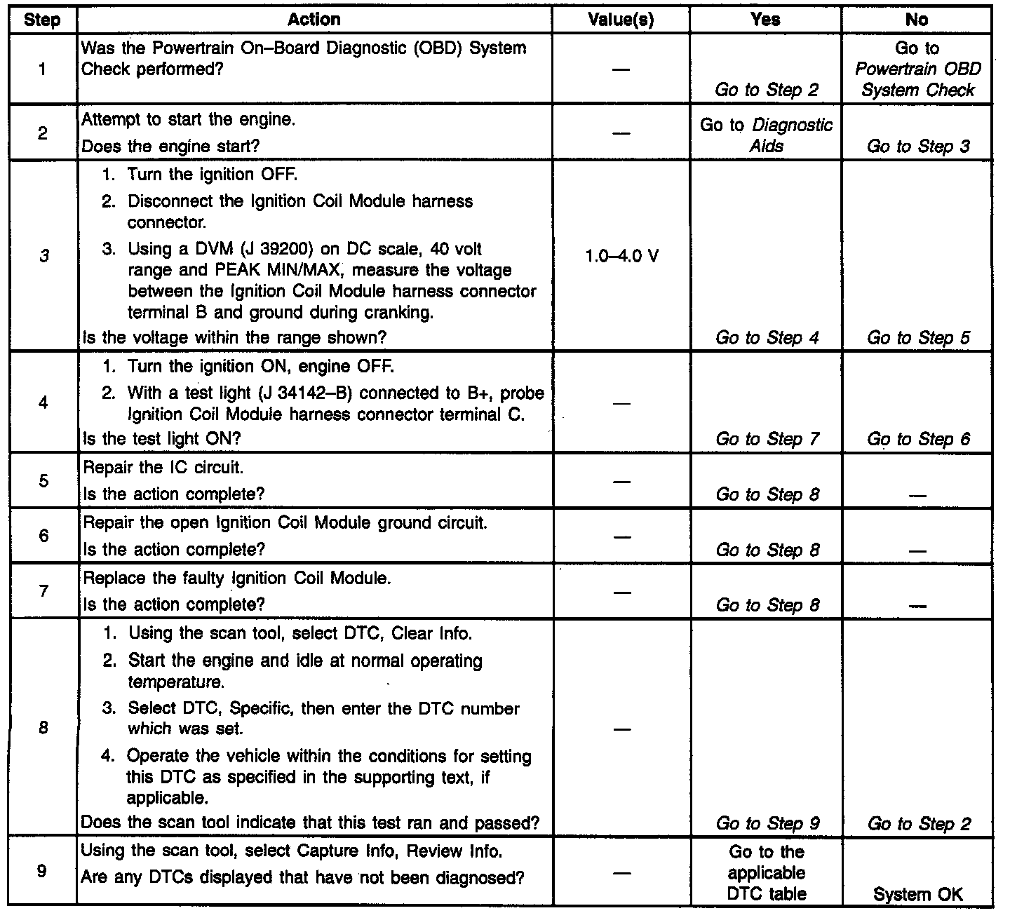 The distributor ignition system provides two timing inputs to the PCM, a high resolution signal (180 pulses per crankshaft revolution) and a low resolution signal (4 pulses per crankshaft revolution). One of the PCMs uses for these signals is to calculate spark timing. This timing signal is sent to the ignition coil module on the Ignition Control(IC) . Each pulse on the IC circuit triggers the coil module to fire the ignition coil. The secondary ignition voltage then travels through the distributor to the spark plug. The IC signal voltage ranges from about 0.5 volt to 4.5 volts.