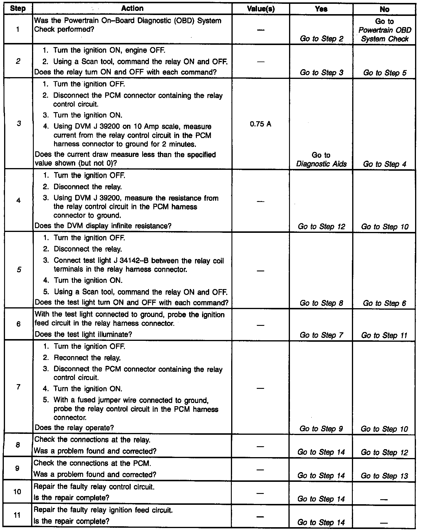 13. If no trouble is found in the control circuit or the connection at the PCM, the PCM may be faulty, however, this is an extremely unlikely failure.