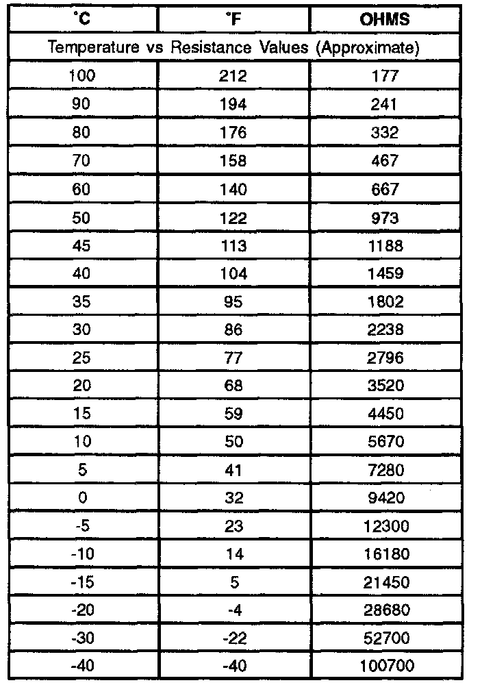 ^ A skewed (mis-scaled) sensor can result in firm shifts or TCC complaints. Evaluate the possibility of a skewed sensor by using the temperature to resistance value scale. With the temperature to resistance scale you can inspect the TFT sensor at various temperature levels.