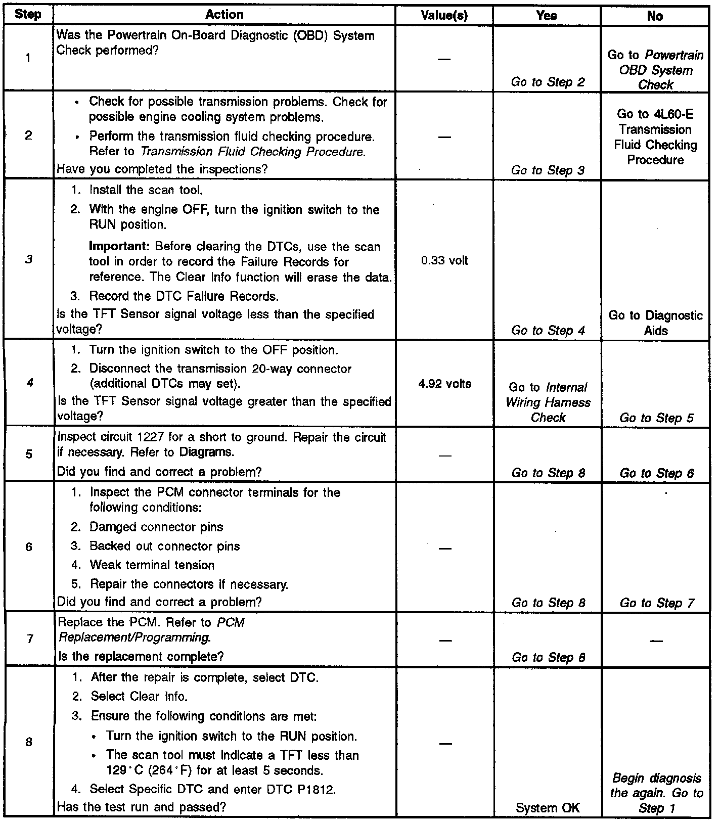When the PCM detects a high transmission temperature for a long period of time, then DTC P1812 sets. DTC P1812 is a type D DTC.