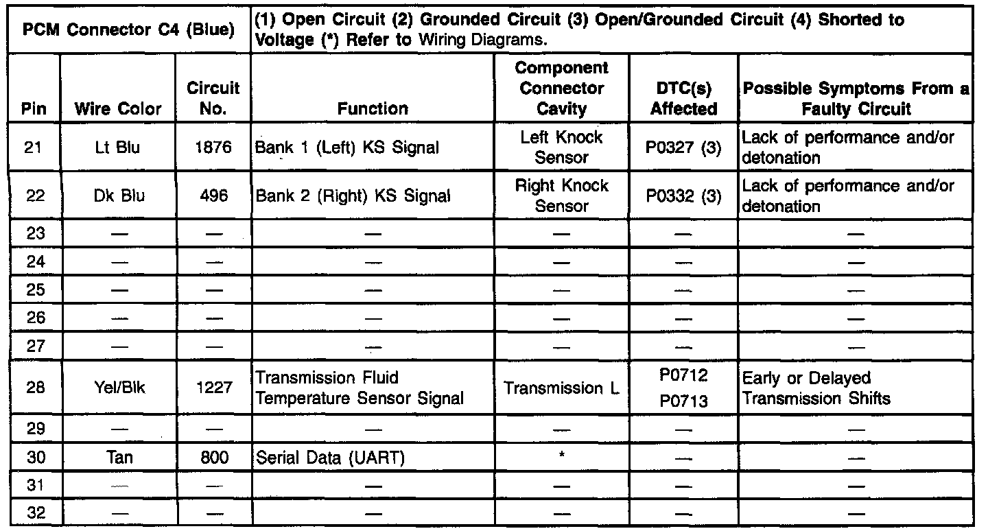 CONNECTOR C4 (BLUE) PINS 21 - 32