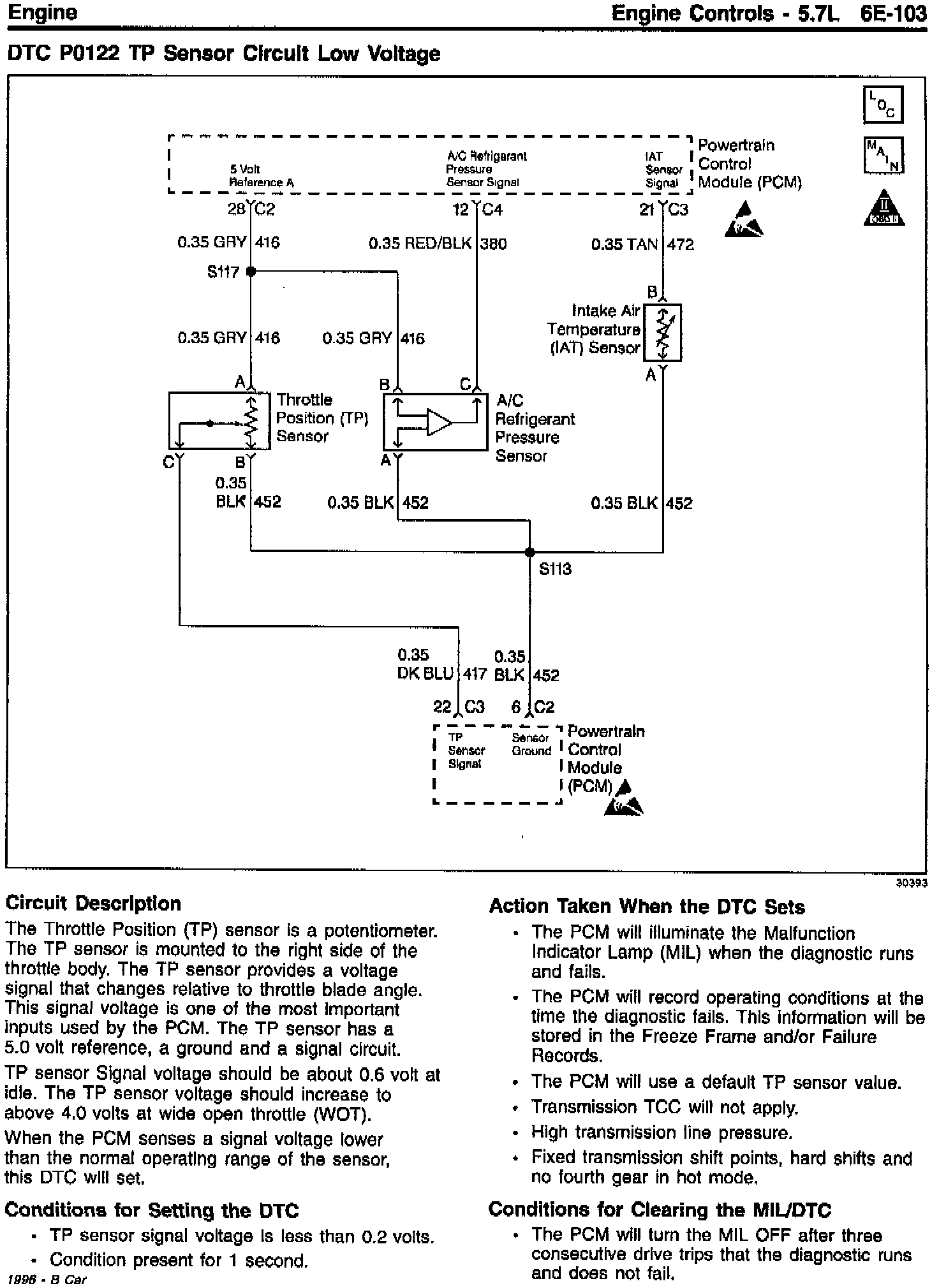 This bulletin is being issued to revise Diagnostic Trouble Code P0122 TP Sensor Low Voltage table for the 1996 B Platform Service Manual.