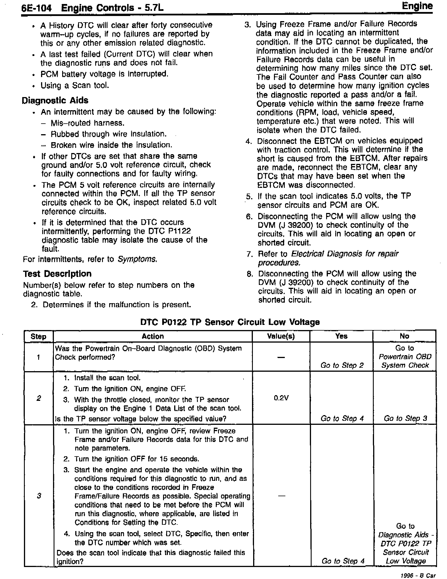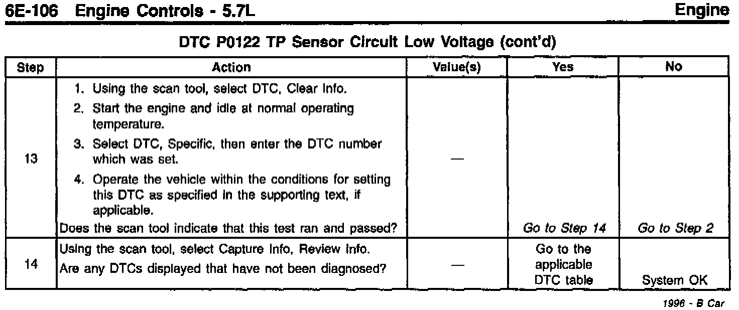 Section 6E - Engine Controls - Revised Diagnostic Table for DTC P0122