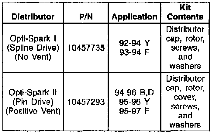 There are two (2) variations of Opti-Spark Distributors. It will be mandatory to identify which type is to be serviced for proper parts procurement.
