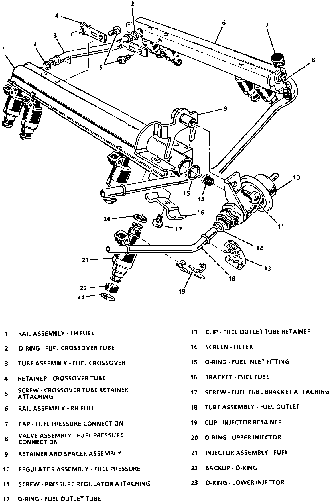 Area around fuel pressure connection with GM X-30A or equivalent.