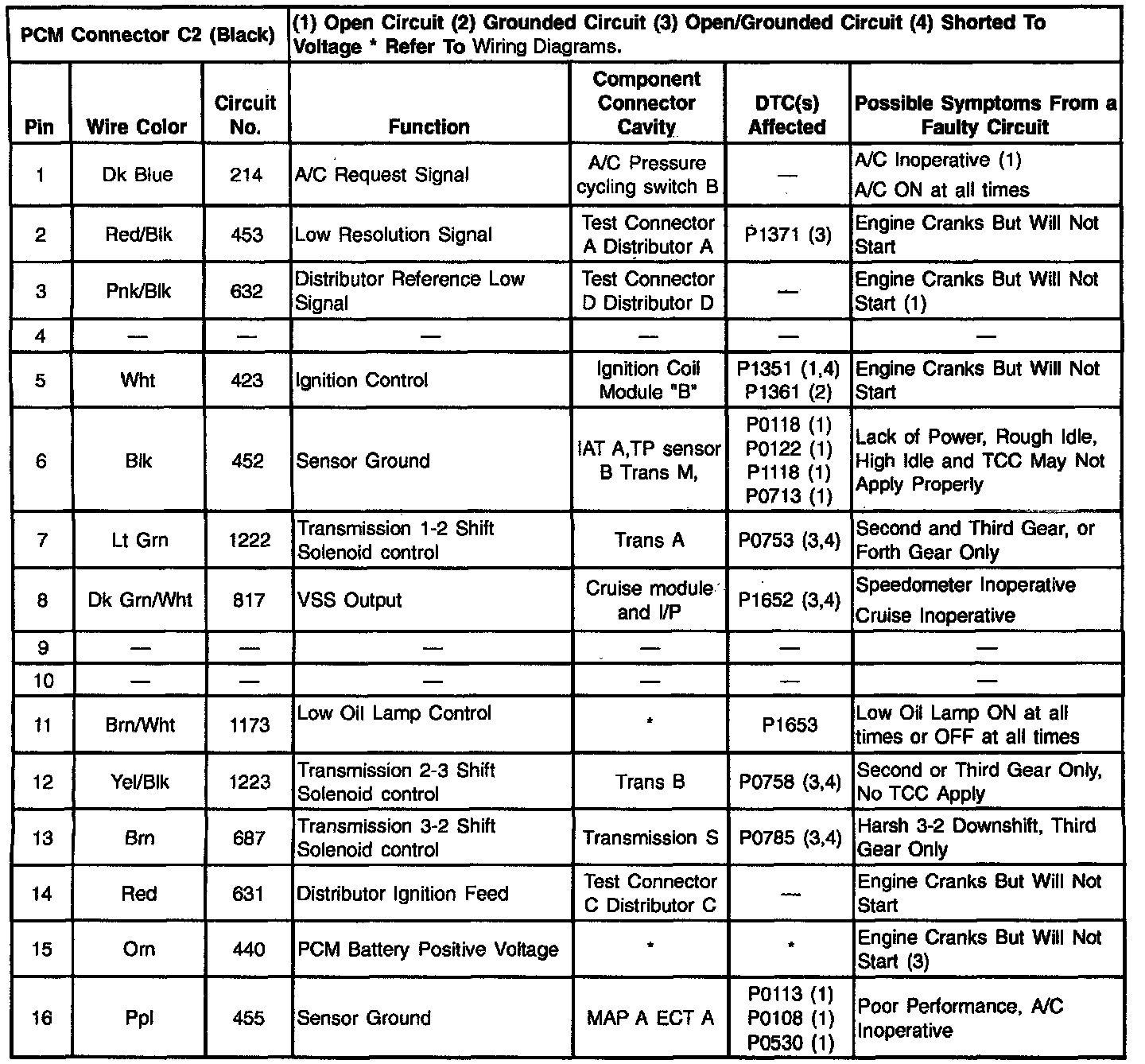 CONNECTOR C2 (BLACK) PINS 1 - 16