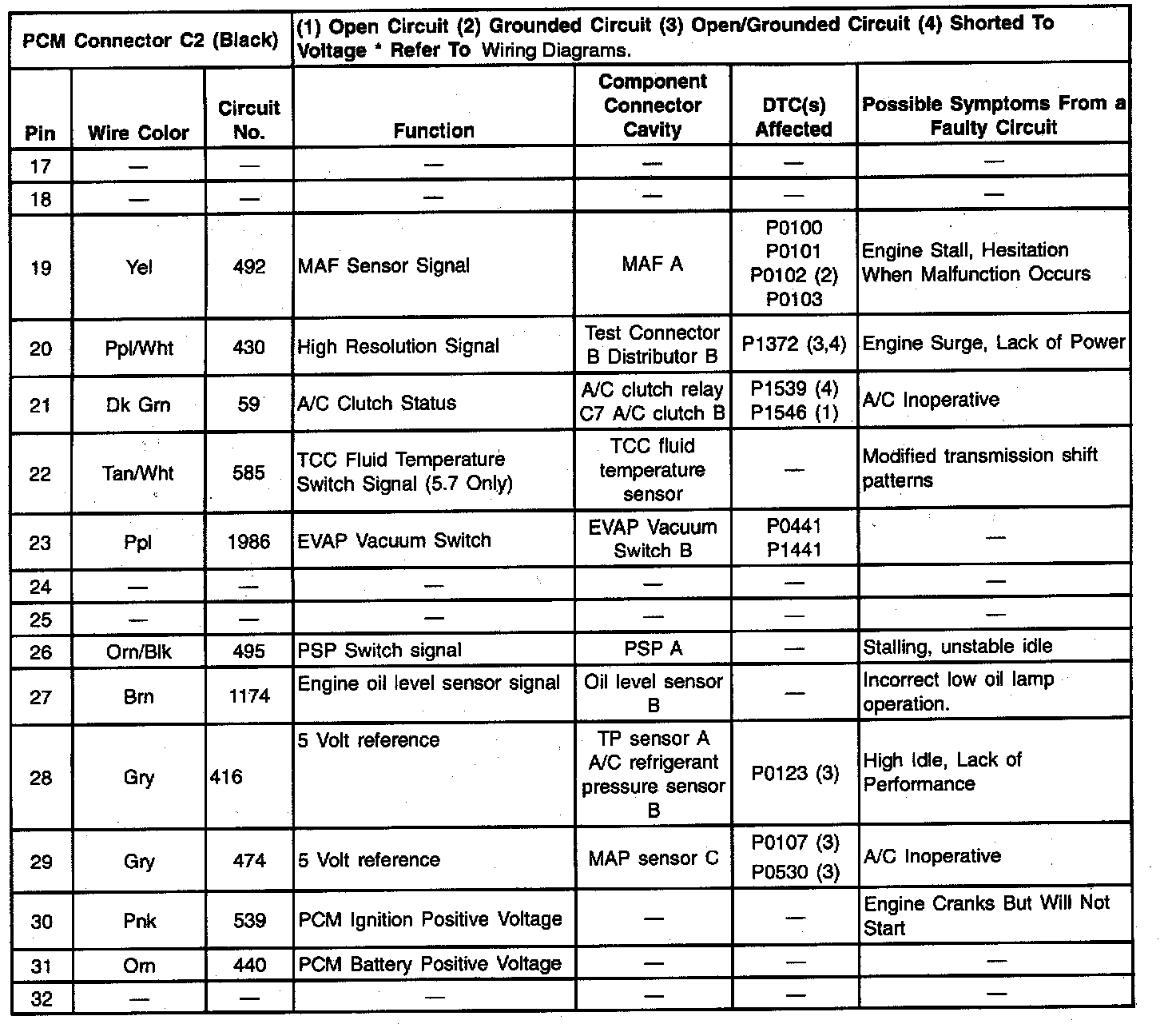 CONNECTOR C2 (BLACK) PINS 17 - 32