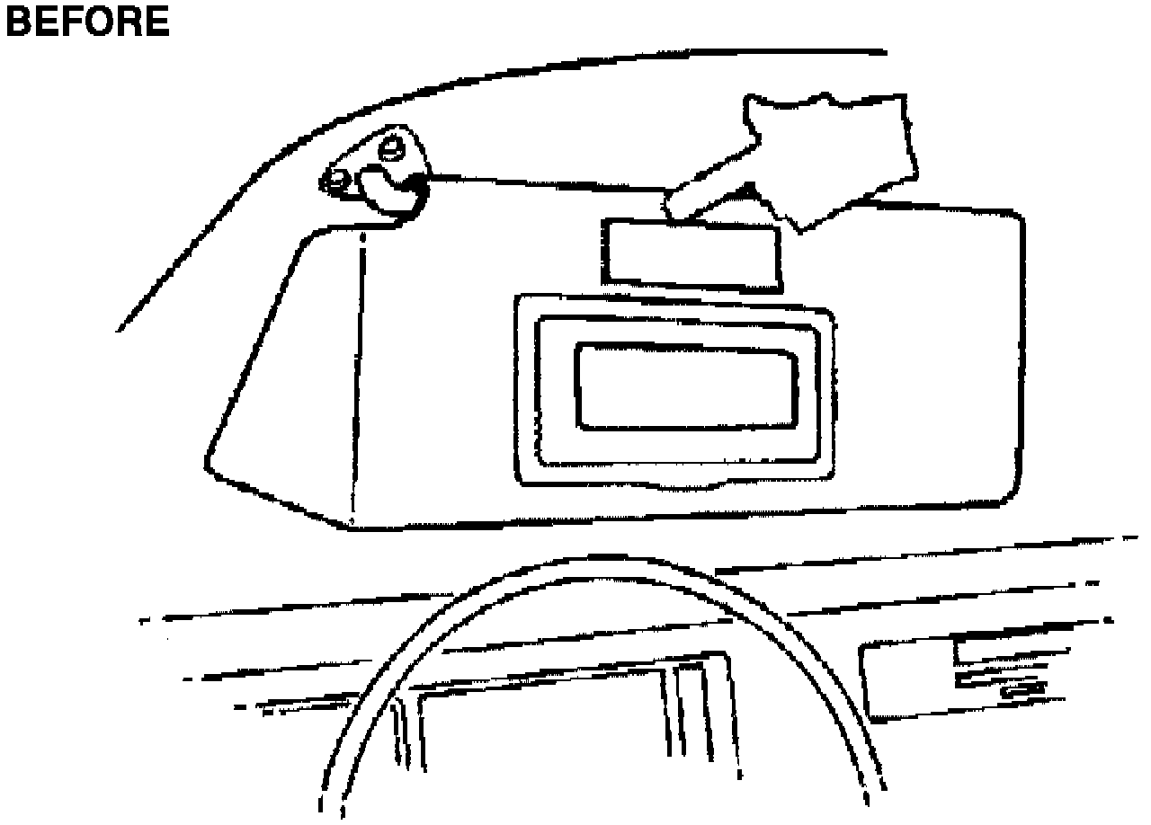 4. Peel off the paper backing of the new Roof Rack Caution Label and install it facing you on the headliner and centered in the sun visor pocket of the headliner (see Figure).