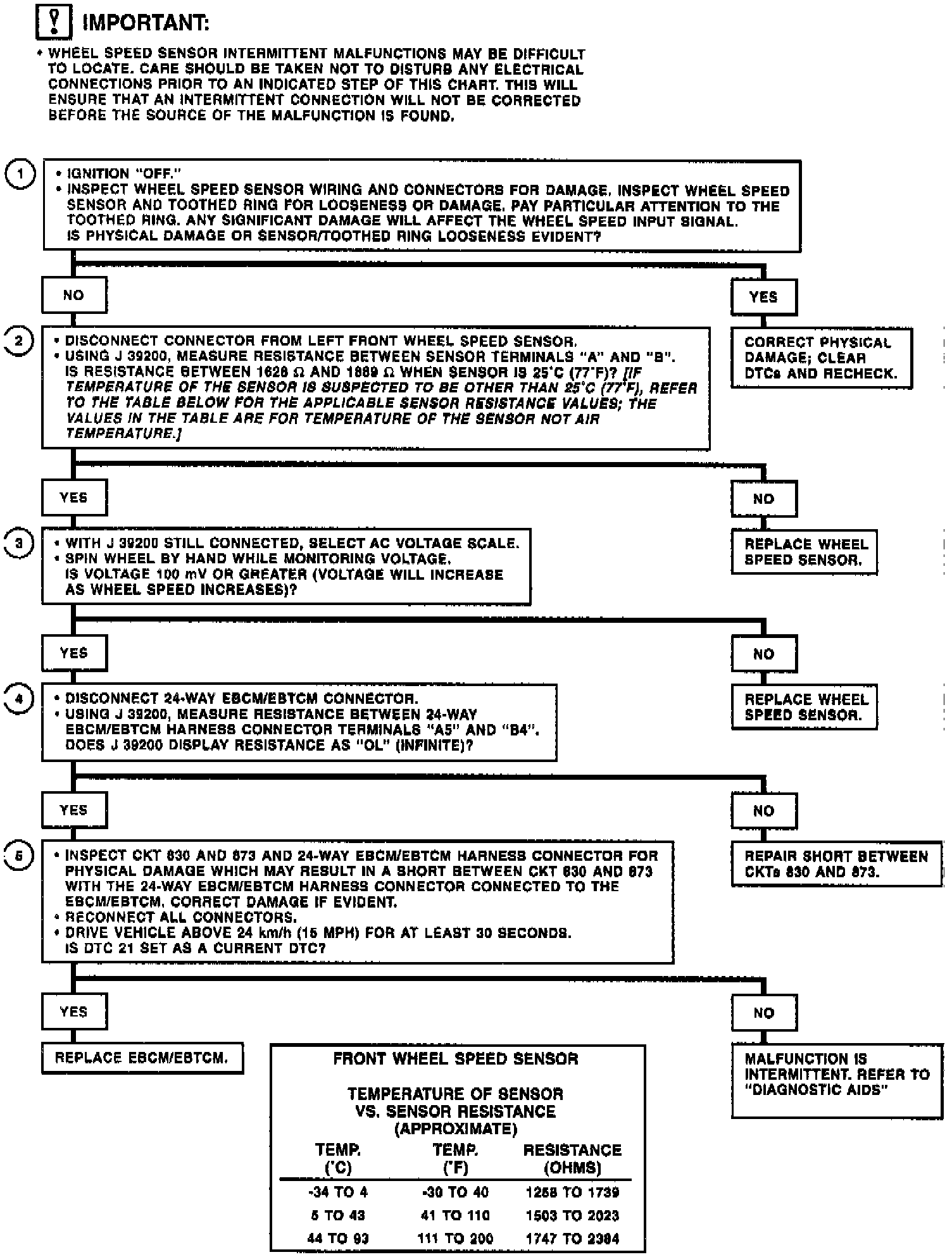 2. Checks wheel speed sensor for proper resistance value.