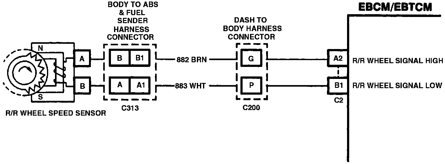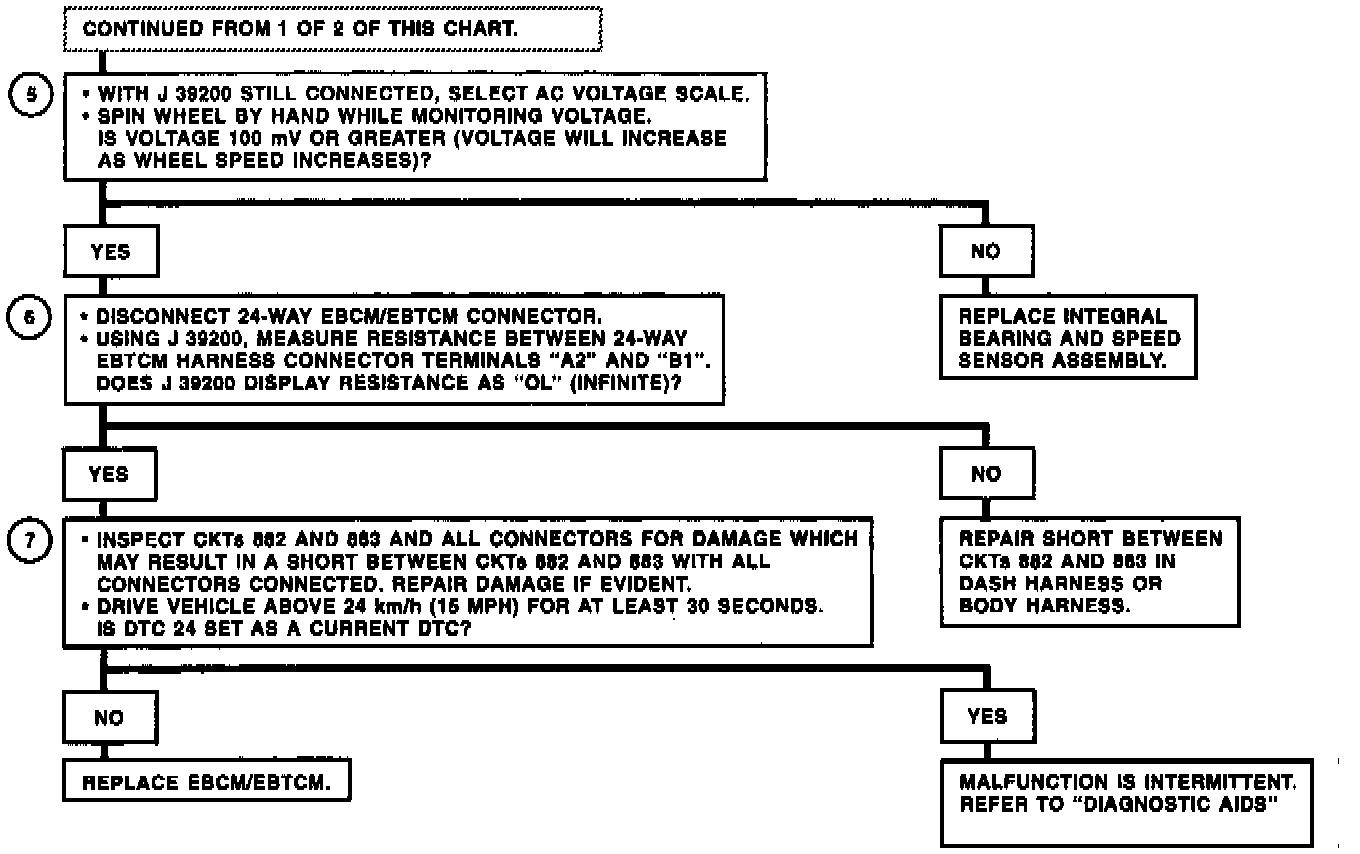 6. Checks for short between the wheel speed signal high and low circuits in the dash or body harness.