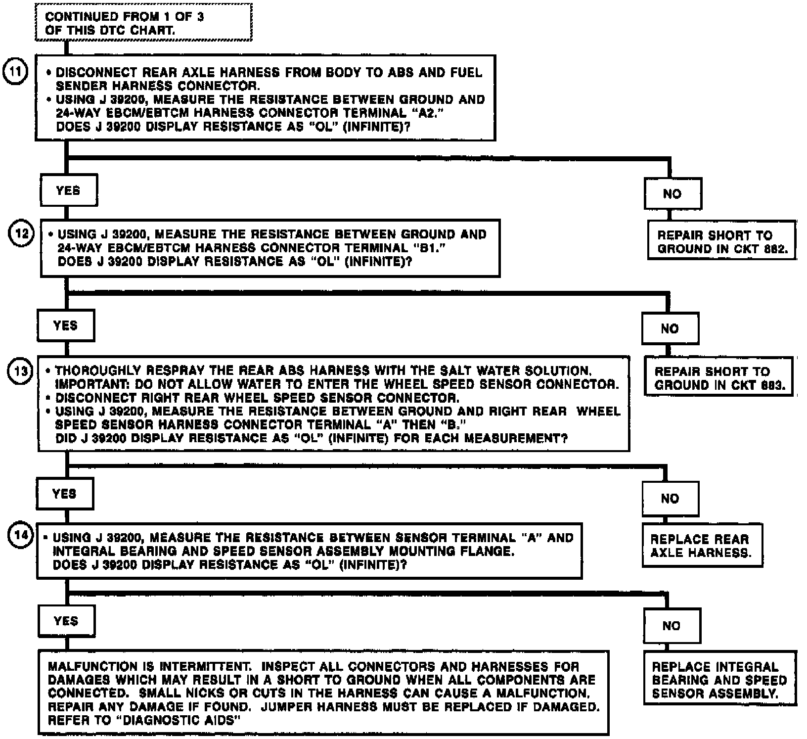 14. Ensures that the wheel speed sensor is not shorted to ground.