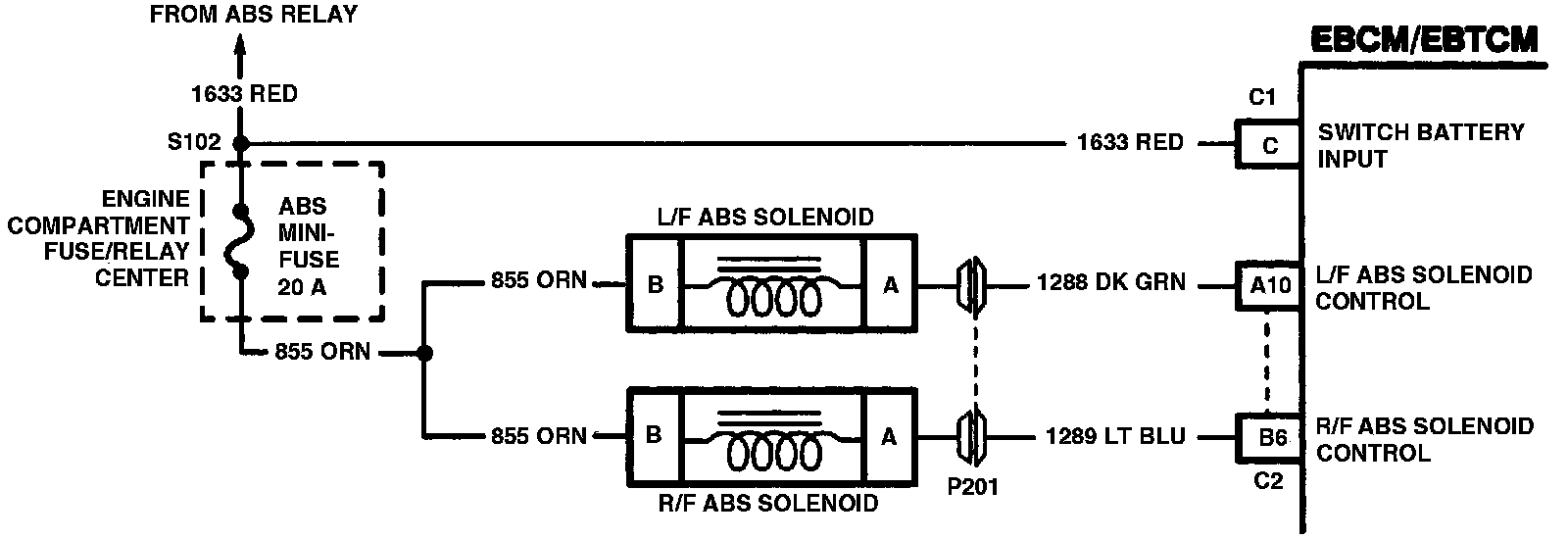 This DTC identifies a solenoid that cannot be energized due to a short to voltage between the EBCM/EBTCM and the solenoid. These malfunctions can affect ABS operation since the flow of brake fluid to the wheel cylinder cannot be stopped, making ABS operation for that channel impossible.