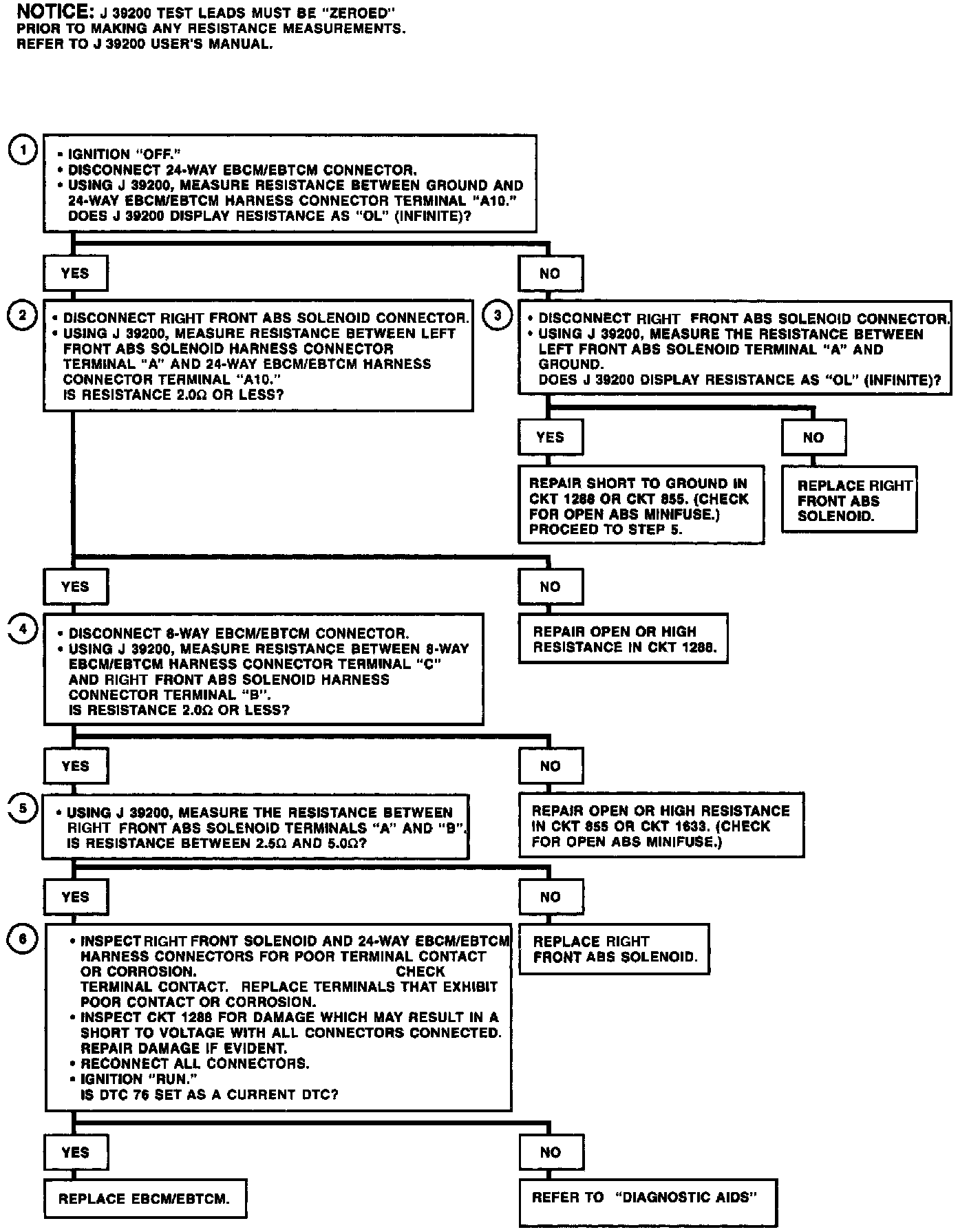 DTC 76 Left Front Solenoid Circuit Open Or Shorted To Ground: