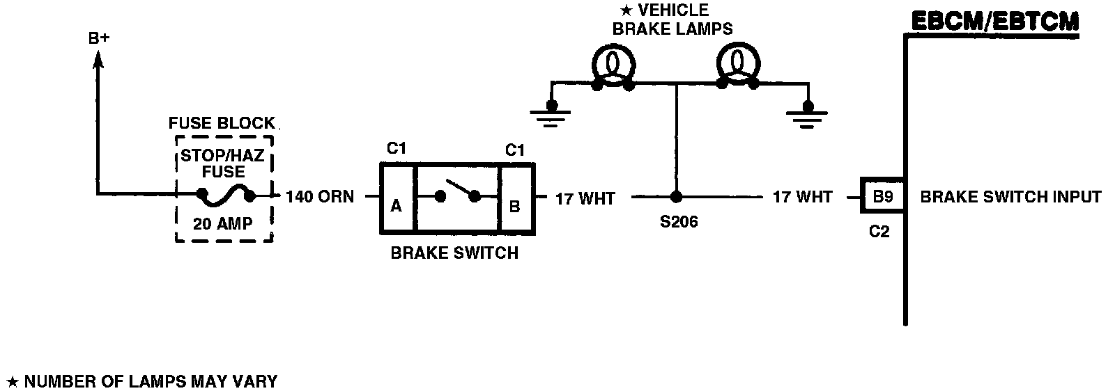 2. Indicates if an open circuit exists in the brake switch or brake lamp circuitry.