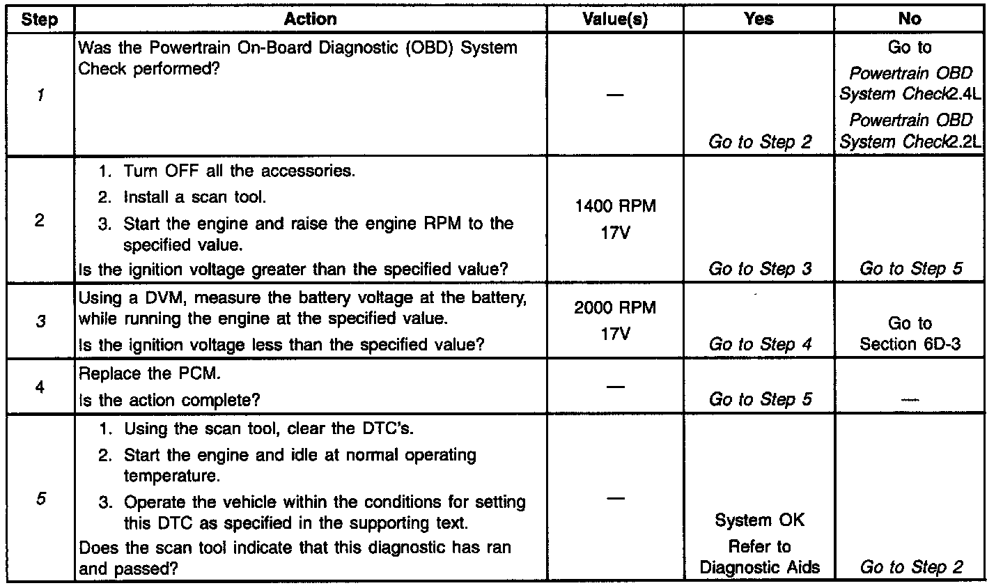 The Powertrain Control Module (PCM) monitors the ignition voltage on the ignition feed #2 circuit to the PCM. A system voltage DTC will set whenever the voltage is below a calibrated value.