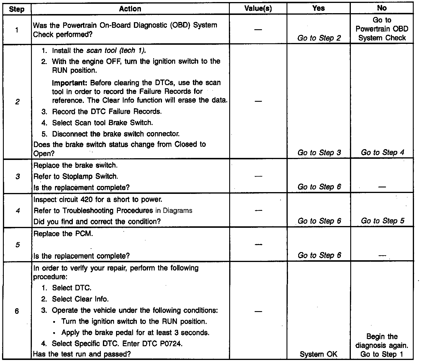 P0724 WITH 4 SPEED AUTOMATICDiagnostic Chart: