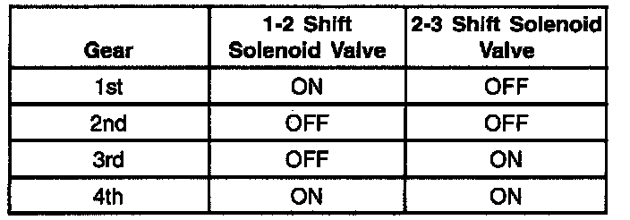 The 1-2 Shift Solenoid Valve (1-2 SS Valve) controls fluid flow acting on the 1-2 shift valve. The solenoid is a normally-open valve that, in conjunction with the 2-3 Shift Solenoid Valve (2-3 SS Valve), allows four different shifting combinations (Refer to the illustrated 4T40-E Shift Solenoid State chart). The 1-2 SS Valve is attached to the valve body, within the transmission. The solenoid receives ignition voltage through the fused circuit. The Powertrain Control Module (PCM) commands the solenoid ON or OFF by providing a ground path through circuit 1222.