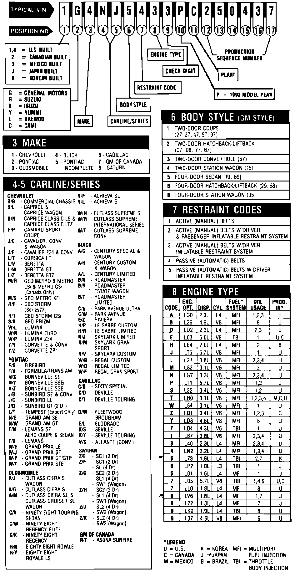 GM Automobile VIN Charts