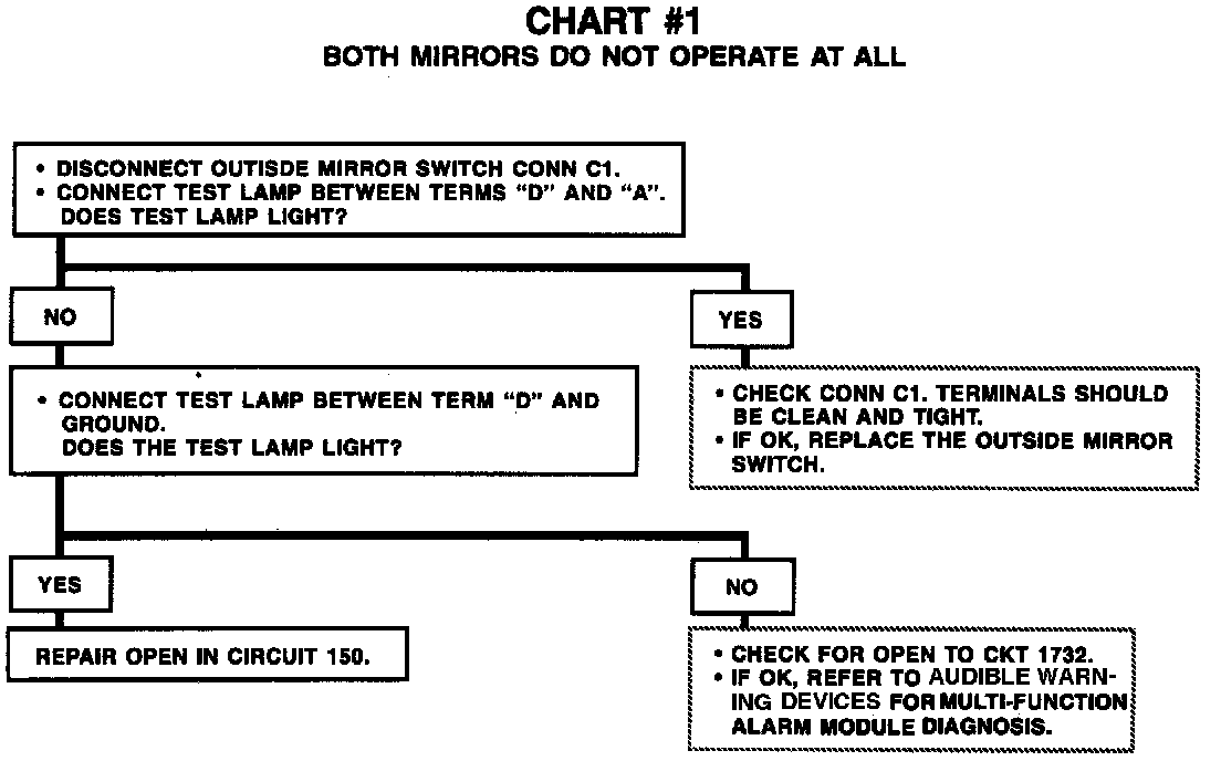 Chart #1 Both Mirrors Do Not Operate At All: