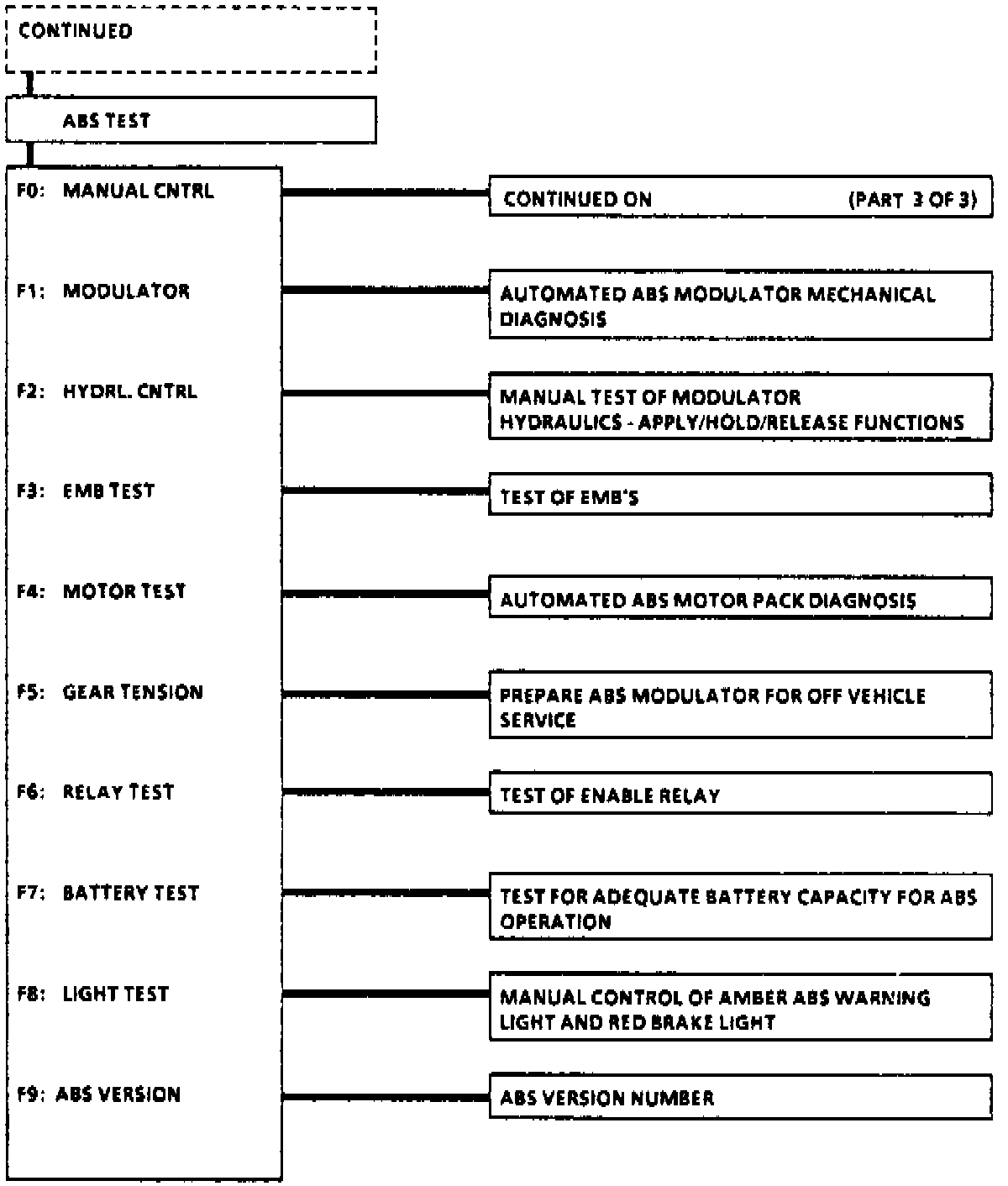 e. MODE F4: ABS TESTS: In this mode, scan tool performs hydraulic modulator functional tests to assist in problem isolation during troubleshooting.