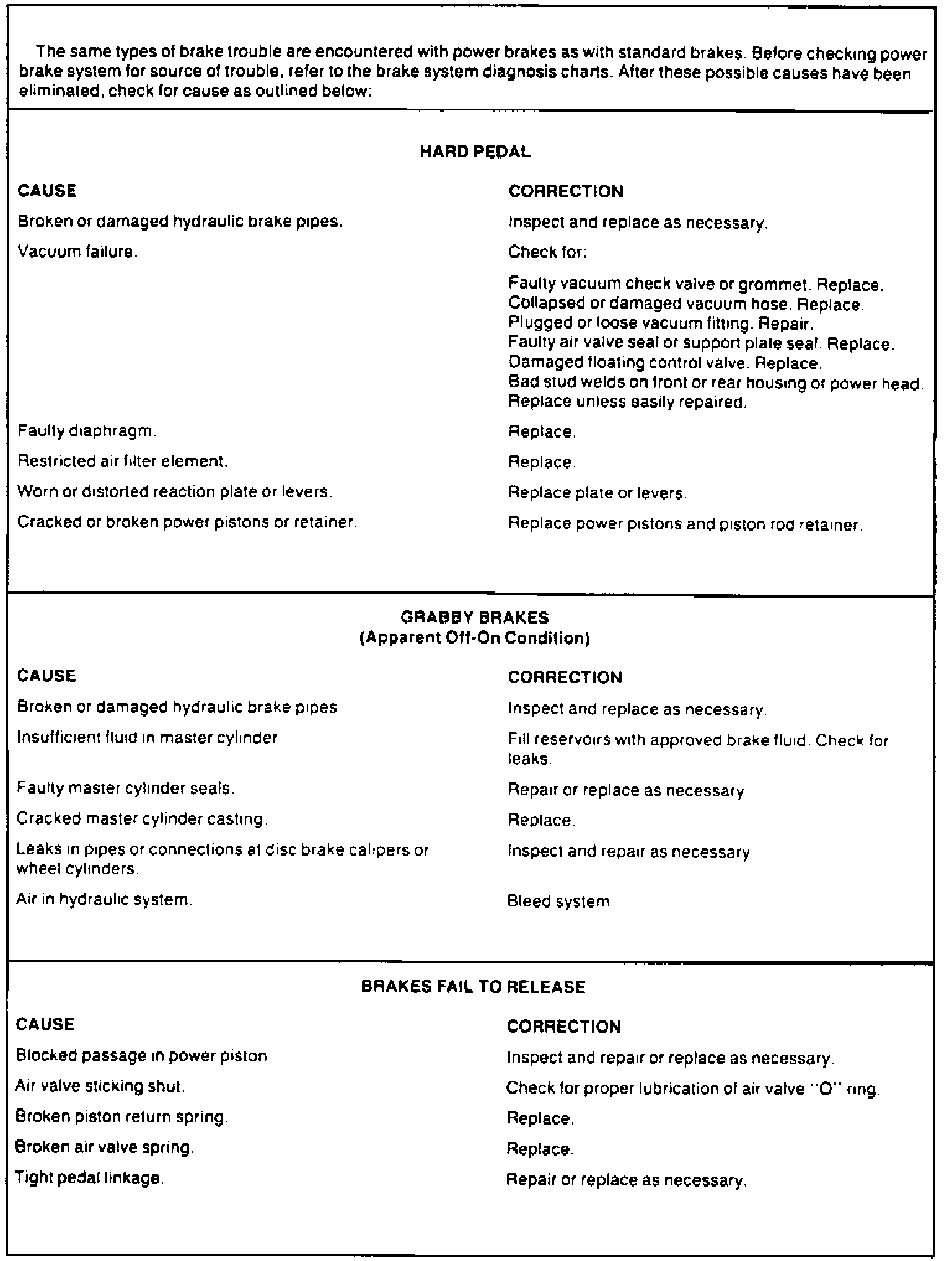Fig. 18 Power Brake Diagnosis Chart: