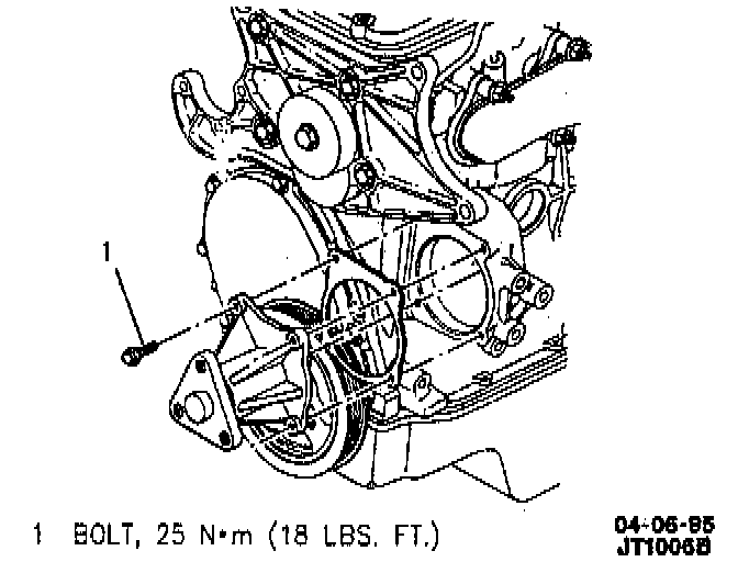 7. Water pump attaching bolts, then remove the pump. Clean sealing surfaces completely.