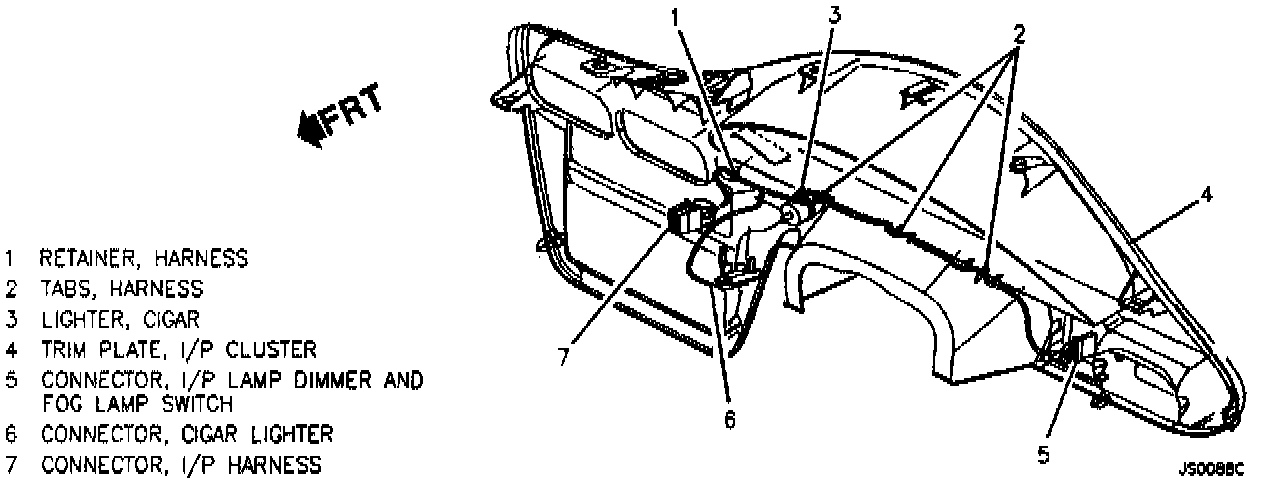 1. I/P lamp electrical connector.