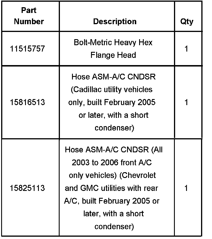 1500 Series Vehicles Only, Built in February 2005 or Later, with 4.8L, 5.3L or 6.0L Engine (RPOs LM7, LQ4, LQ9, LR4 and L59) and Front and Rear Air Conditioning (RPOs CJ2, CJ3 and C69) and a Short Condenser